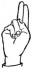 На ћирилици написано БЛАЖА СТОШИЋ састоји се из 11 слова [?]. Исписано ћириличном једноручном азбуком за глувонеме: